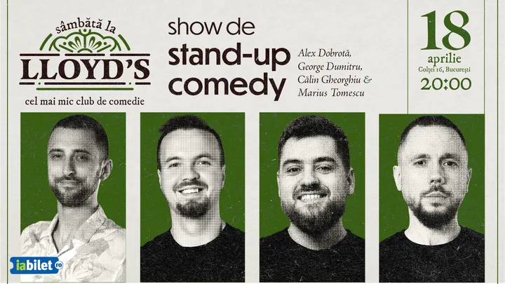 Te așteptăm la Lloyd's Comedy Club să te distrezi alături de noi la un Show de Stand-up Comedy oferit de 4 comedianți talentați, pregătiți să te facă să râzi cu momentele lor pline de umor.